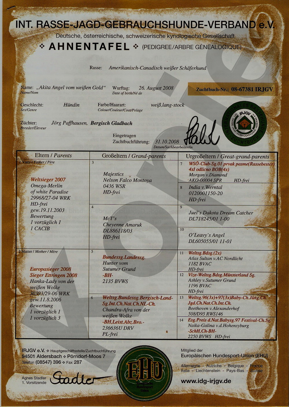 Akita Angel vom weißen Gold Ahnentafel zum vergrößern anklicken