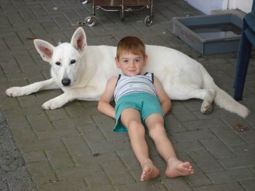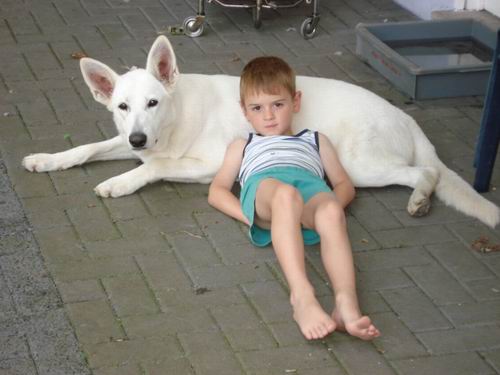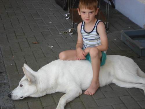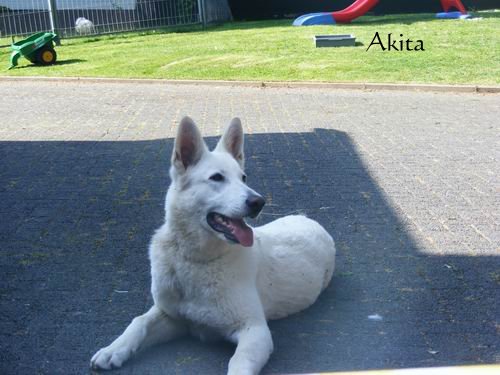 26.10.2008 Akita war der erste Welpe der in unserer Zuchtstätte geboren ist. Akita, von uns meist nur liebevoll Kita gerufen, hat uns ganz plötzlich innerhalb von einer halben Stunde verlassen und entschlief langsam unter meinen Händen. Wie soll ich sie beschreiben? Sie war einfach nur wundervoll, bekam alles mit, schlug sofort Alarm wenn sie nur ein Auto vorfahren hörte, bellte und kündigte den Besuch an. Dann wurden die Menschen abgecheckt und alles war gut, denn sie war im Herzen ein liebevoller Hund, der Menschen und insbesondere Kinder liebte. Für uns ist sie unersetzlich. Trotz unserer weiteren Hunde hat ja jeder Hund eine andere Art an sich, jeder ist einzigartig und auf seine Weise toll. Akita war sehr pflegeleicht, die umgänglichste von meinen Mädels. Man konnte sie überall hin mitnehmen, sie hörte aufs Wort und wollte mir einfach nur gefallen. Nicht nur bei mir, auch bei meinem Sohn Lukas oder meiner Freundin Steffi (die zwei waren auch sehr verbunden auf ihre Art) war sie sehr anhänglich. Da durfte sie nicht nur vor die Couch, sondern auch darauf. Sie schlief nachts immer vor meinem Bett, genau wie die anderen Hunde. Aber sie war es, die mich morgens wenn der Wecker ging, als erste immer begrüßt und angebrummelt hatte und mir ihre Pfote entgegen streckte. Am liebsten spielte sie mit Ihrer Mama Hanka. Wenn die alte Dame dann mal keine Lust mehr hatte ging es weiter mit Tochter Chaya. Sie hatte eine so liebevolle Art an sich, die sich gar nicht beschreiben lässt. Jetzt liegt sie bei uns im Garten beerdigt, was es auch nicht leichter macht, da wir immer sehen wo sie liegt. Dann fragt man sich: Warum bist du so früh von uns gegangen Kita? Akita war auch sonst eine außergewöhnliche Hündin, hatte sehr kräftiges Stockhaar, war sehr muskulös und sehr kräftig für eine Stockhaarhündin. Sie hatte immer zwischen 42 und 45 Kg, was sie von Ihrem Papa, Omega-Merlin of white Paradise, geerbt hatte. Kita fehlt einfach immer, jede ihrer Bewegungen zwischen den anderen Mädels wenn sie hier um uns rum lief. Wir werden Dich nicht vergessen und hoffen, dass wir Dich irgendwann wiedersehen. In ewiger Liebe bleibst Du in unseren Herzen Dein Rudelführer Jörg, Lukas und Steffi